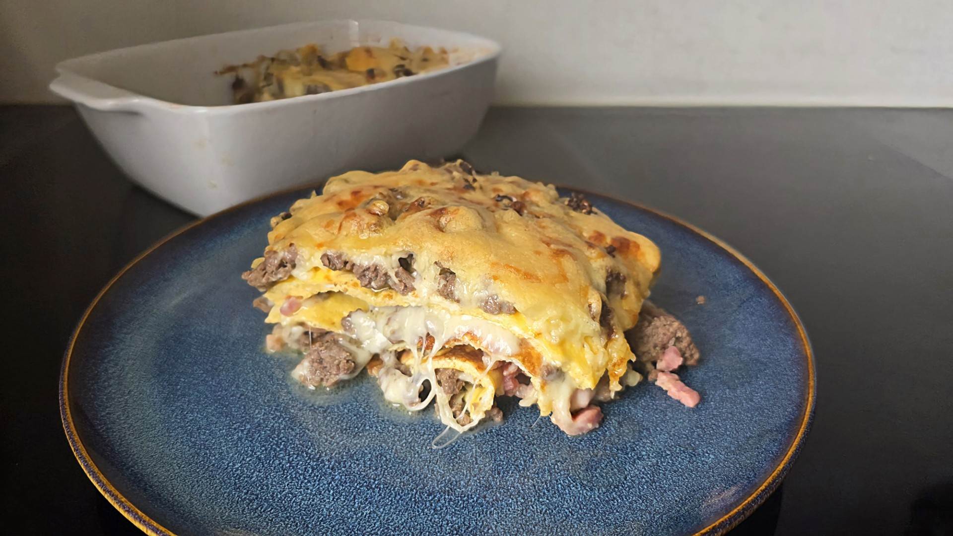 Deze lasagne is ideaal voor een carnivoor leefstijl: geen granen, geen groenten, puur dierlijke ingrediënten zoals vlees, eieren, kaas en spek. Een stevige, voedzame...